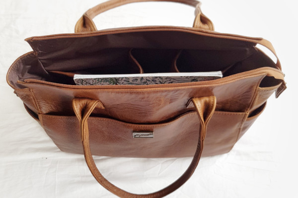 The handcrafted genuine leather Standard Diaper Bag is the perfect companion for your new journey as a parent!